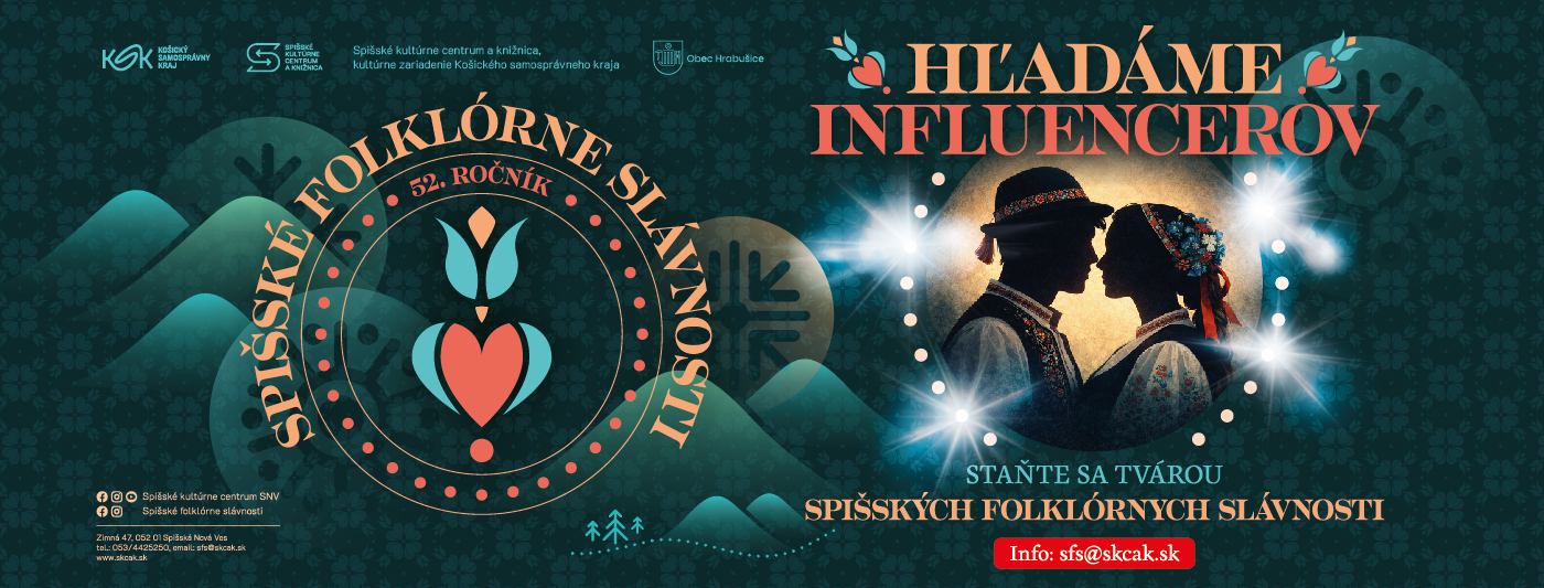 Tento rok festival prichádza s novinkou, ktorá zaujme aj mladšie publikum – Spišské folklórne slávnosti budú mať vlastných influencerov, ktorí budú tvárami podujatia a budú exkluzívne ukazovať zákulisie festivalu prostredníctvom sociálnych sietí.